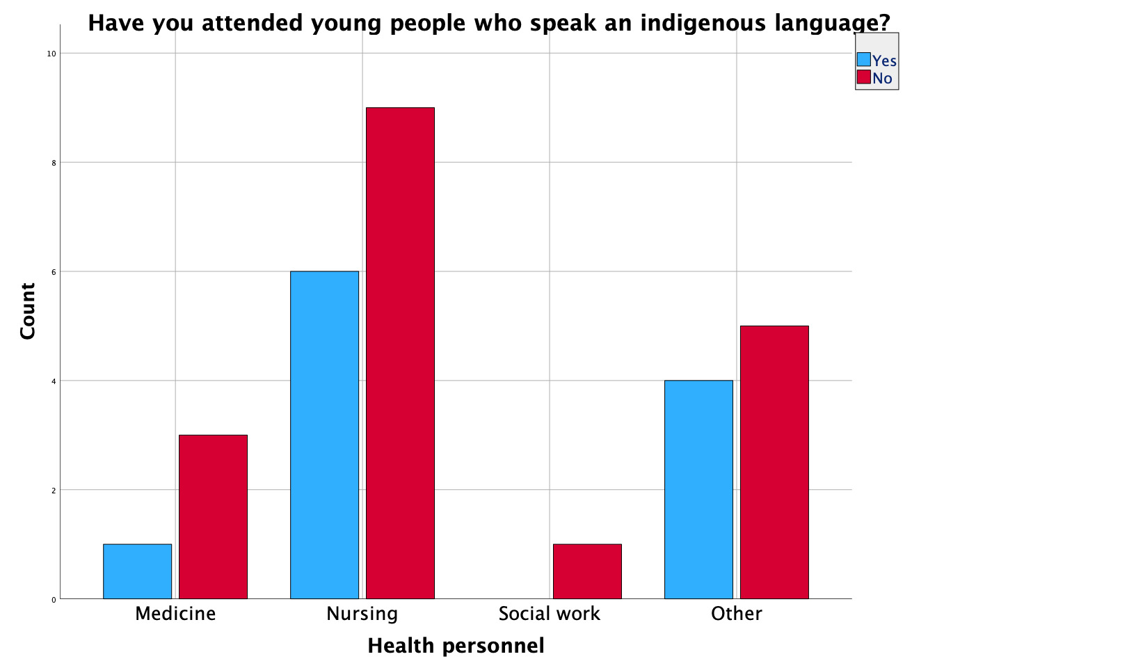 The participants reported variability in the number of young people they attend to, with the majority (24%) reporting an average of 10 consultations. Among the young people served, 38% were identified as speakers of an indigenous language, but only 7% of healthcare professionals could communicate in an indigenous language (see Figure 3).